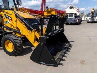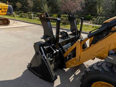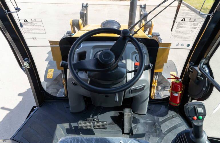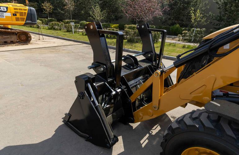 Гидравлическая система с насосом переменной производительности Hengli HP5V76 (156 л/мин) адаптируется к нагрузке, повышая ресурс и снижая расход топлива. Распределители HUSCO и джойстиковое пилотное управление обеспечивают точность и плавность работы, а также возможность полного совмещения операций экскаваторной и погрузочной секций. Доступны стандартный фронтальный ковш или челюстной ковш 6-в-1, усиленные ковши, телескопическая рукоять, гидролиния под навесное оборудование и быстросъём, что расширяет спектр задач — от погрузки и планировки до работы с гидромолотом или буром.